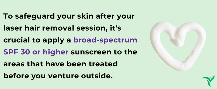 In terms of what else to know and what to expect after your first laser hair removal session, protecting your treated skin from the sun is another important essential. Your skin’s sensitivity to the sun will be significantly increased following laser hair removal treatments. To safeguard your skin, it’s crucial to apply a broad-spectrum SPF 30 or higher sunscreen to the areas that have been treated before you venture outside.Â